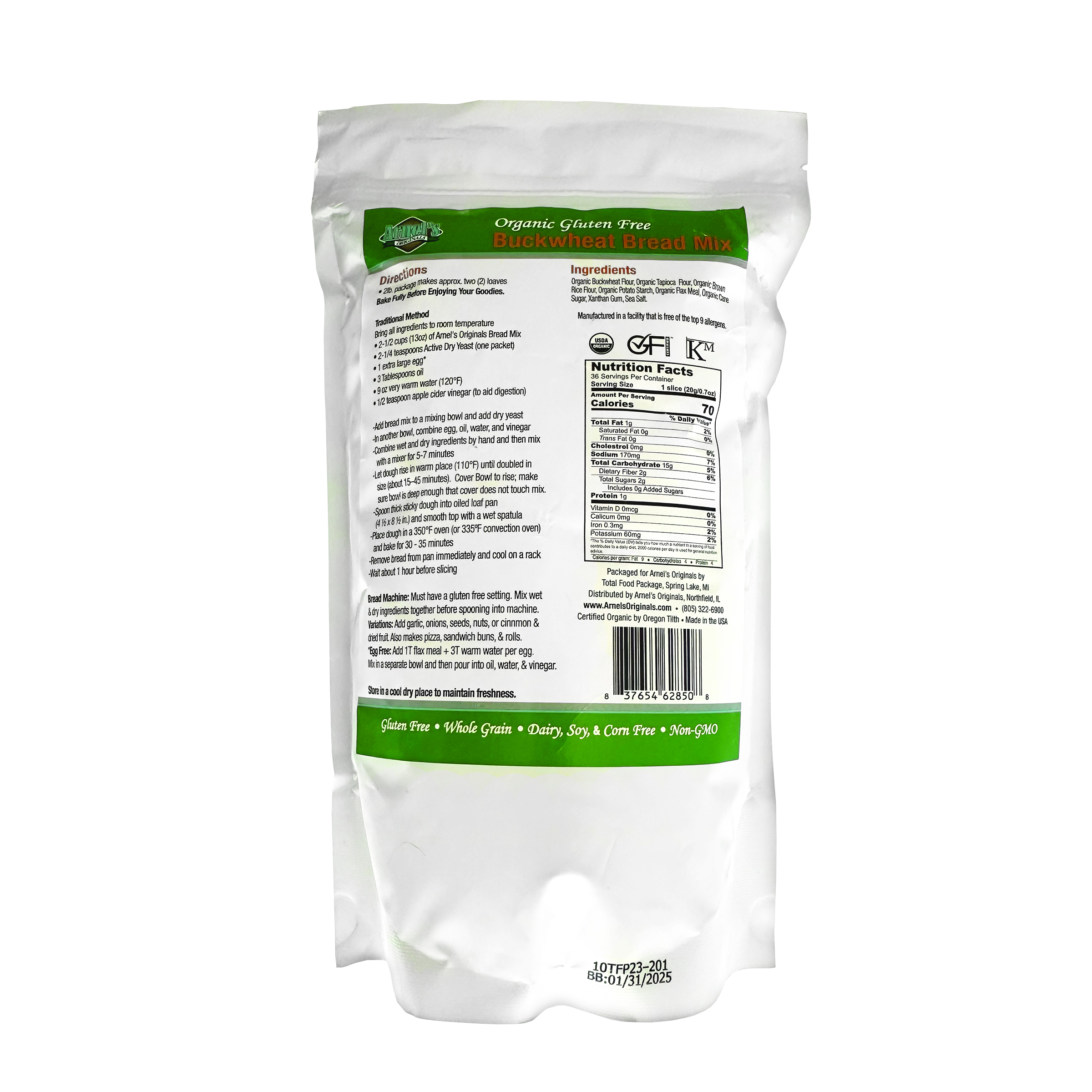 Organic, Gluten Free, Kosher Buckwheat Bread Mix, Made With NON-GMO Ingredients, Made in Allergen Free Facility